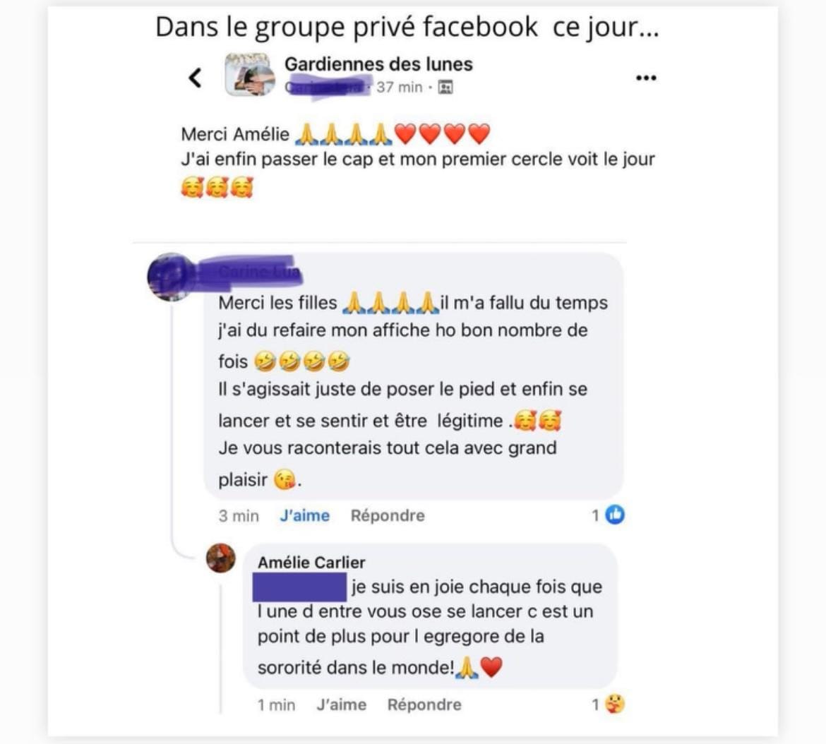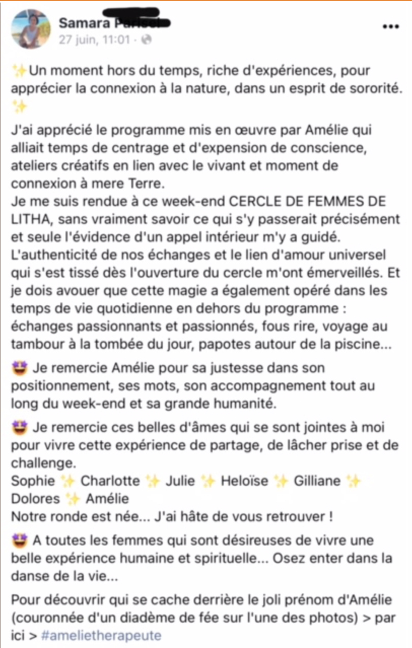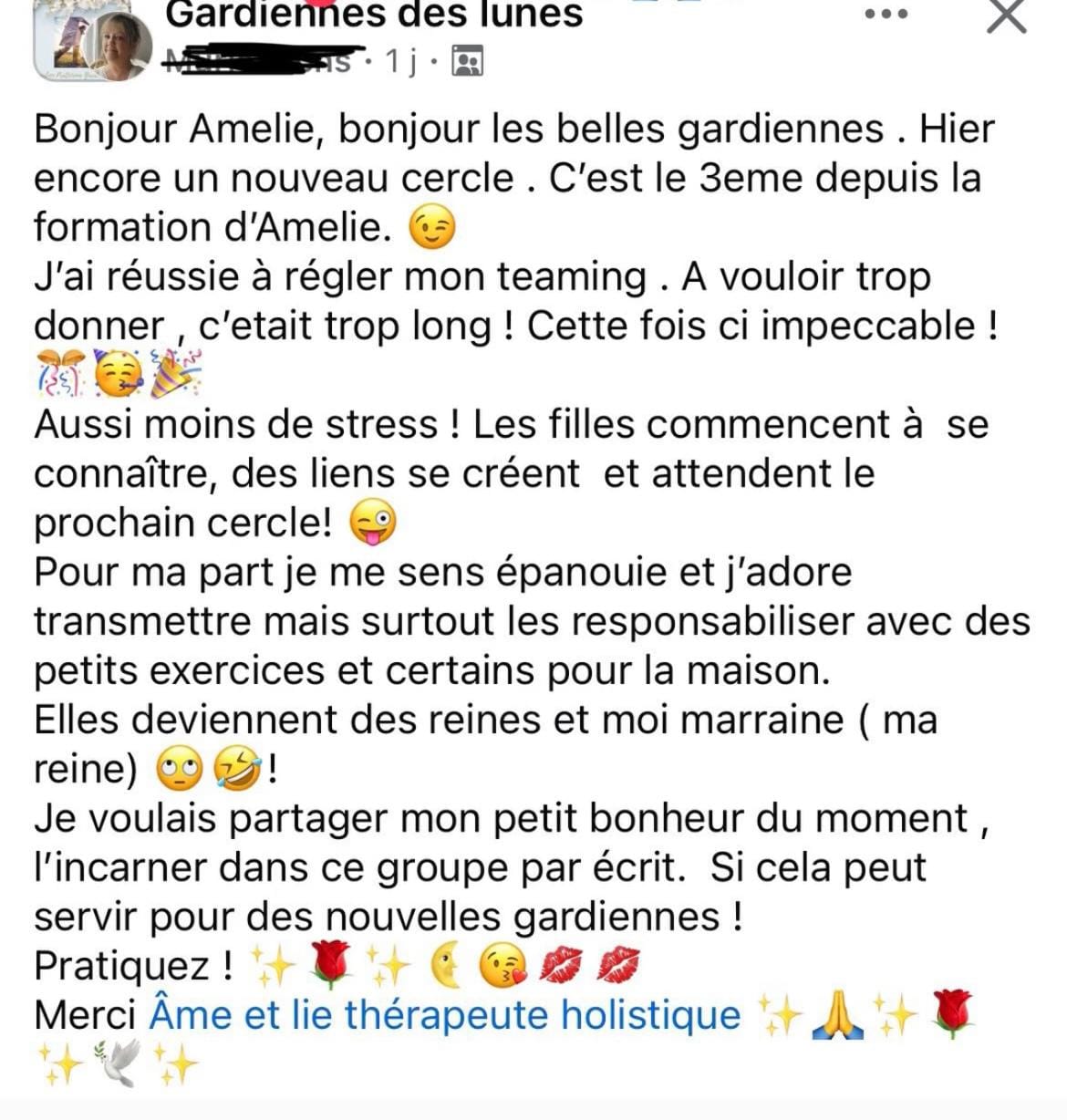 "j’ai eu le bonheur de participer à un cycle de cercle de femmes à l’initiative d’Amélie.