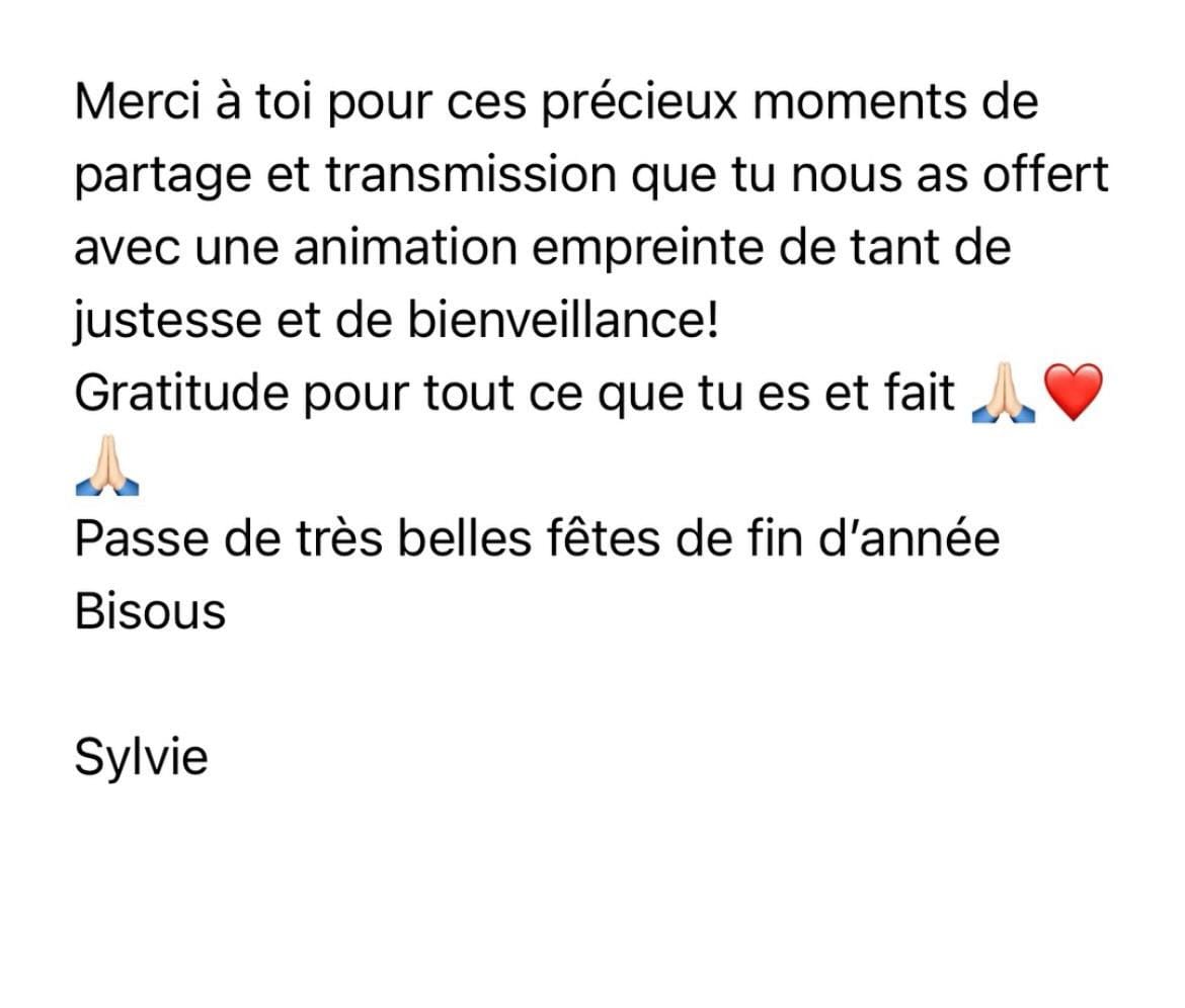 ""Après avoir participé à la riche transmission Gardienne des lunes j'ai eu envie d'expérimenter un cercle de femmes avec Amélie. Ce cercle pour Yule a été une parenthèse enchantée pour moi. En pleine nature, dans une yourte je me suis sentie hors du temps et j'ai apprécié de prendre ce temps pour moi, loin du tumulte familial. Amélie et son adorable mari Sebastien nous ont accueilli dans leur cocon et ont tout fait pour que l'on se sente bien chez eux. J'ai rencontré des femmes merveilleuses avec qui j'ai pu créer facilement et spontanément des liens et pu échangé sans honte ni peur ni jugement, des sœurs d'ame qui m'ont écouté dans la bienveillance et le respect, c'est tellement rare et précieux. Cette sororité fait du bien au cœur et à l'âme. Le travail fait avec Amelie à été dans la douceur et la joie mais a été très profond. Elle a su varier les pratiques et nous amener à nous découvrir et nous libérer. Elle sait nous accompagner par sa pétillante et ses conseils sages. En passant par le yoga, les plantes, les oracles, les contes, des rituels et des ceremonies incroyables j'ai eu l'impression de progresser sur mon chemin de vie en 3 jours bien plus qu'en plusieurs mois. Gratitude infinie pour tout cela chère Amelie."